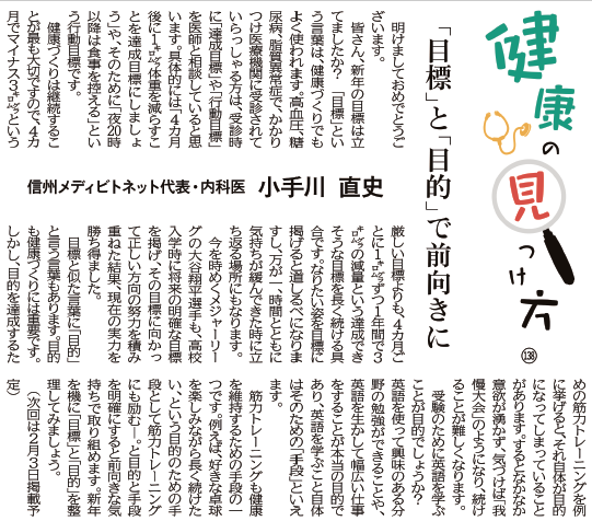 「目標」という言葉は、健康づくりでもよく使われます。